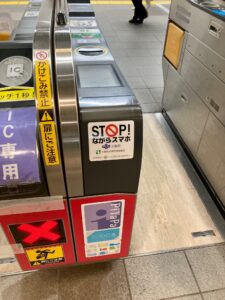 昨年、大阪府交通対策協議会に寄贈しました「STOPながらスマホ」のステッカーが地下鉄、モノレールなどの駅構内や改札口に貼られており、「ながら行為」の防止に向けた啓発活動の一助を担っています。